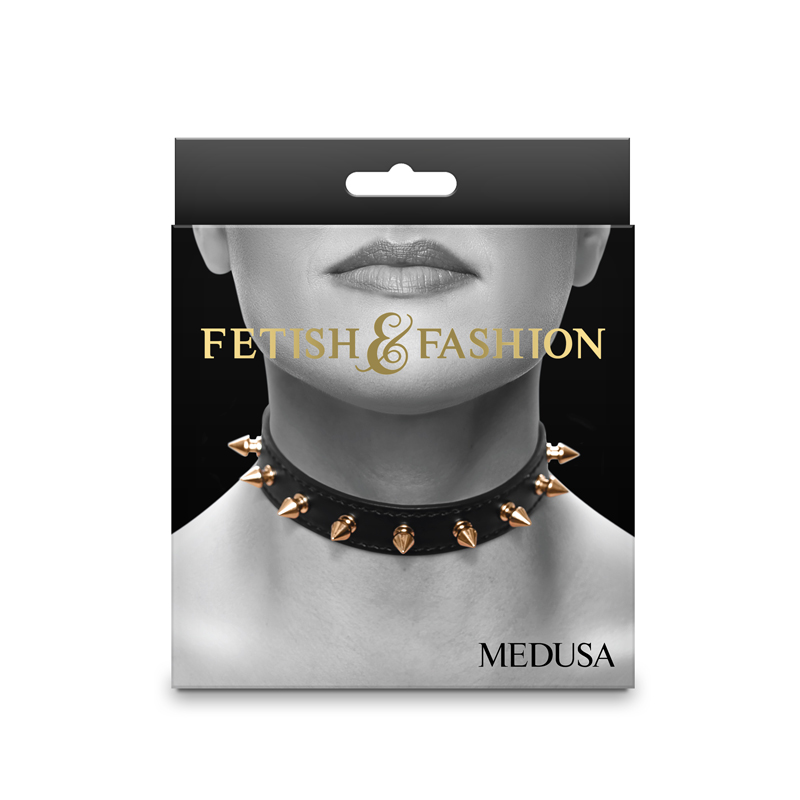 Fetish & Fashion’s Medusa Collar is ideal for both Doms and Subs. Designed for neck sizes from 11.5 to 17.5 inches and decorated with studded metal spikes, Medusa features an adjustable buckle closure. Crafted from man-made materials (PU) and nickel-free hardware. Leash sold separately.  |