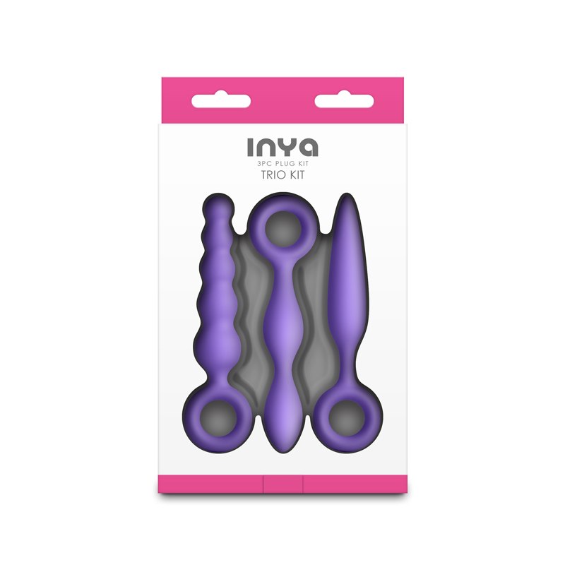 INYA's Trio Kit is a three-piece anal plug set designed for comfort, exploration, and progression. Each slim plug features a finger ring for easy retrieval and is made of body-safe silicone. Compatible with all lubricants and perfect for beginners.